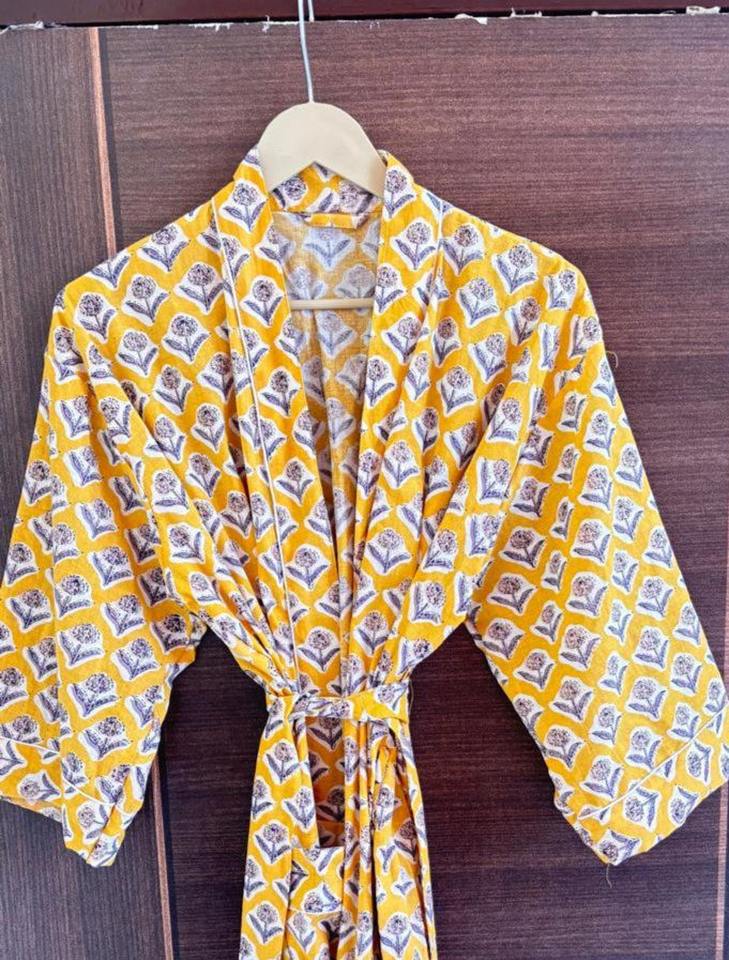 Indian Handmade Floral Cotton Kimono Robe Boho Loungewear Lightweight Bathrobe Block Print Dressing Gown Soft Cotton Kimono