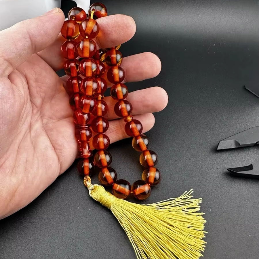 ลูกประคำอิสลามแบบทำมือสไตล์อินเดีย ทำจากเรซิ่นรักษ์โลก ปรับแต่งสีและรูปทรงได้ ประดับด้วยเทอร์ควอยซ์ธรรมชาติ