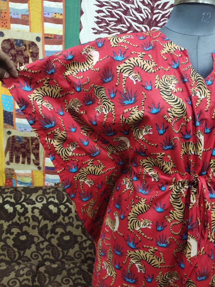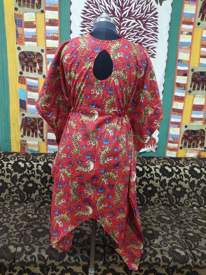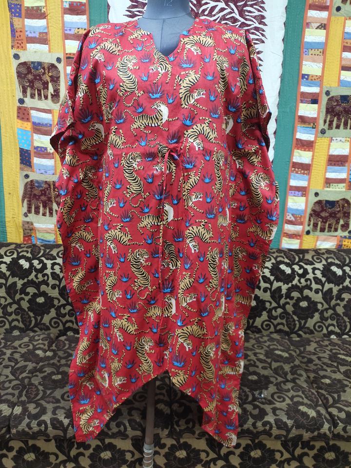 เดรสคาฟตันทำด้วยมือสไตล์อินเดียสำหรับผู้หญิงเสื้อคลุมยาวสไตล์ฮิปปี้ชุดปาร์ตี้ลำลองพิมพ์ลายสัตว์ผ้าฝ้ายสั้นขนาดใหญ่พิเศษ