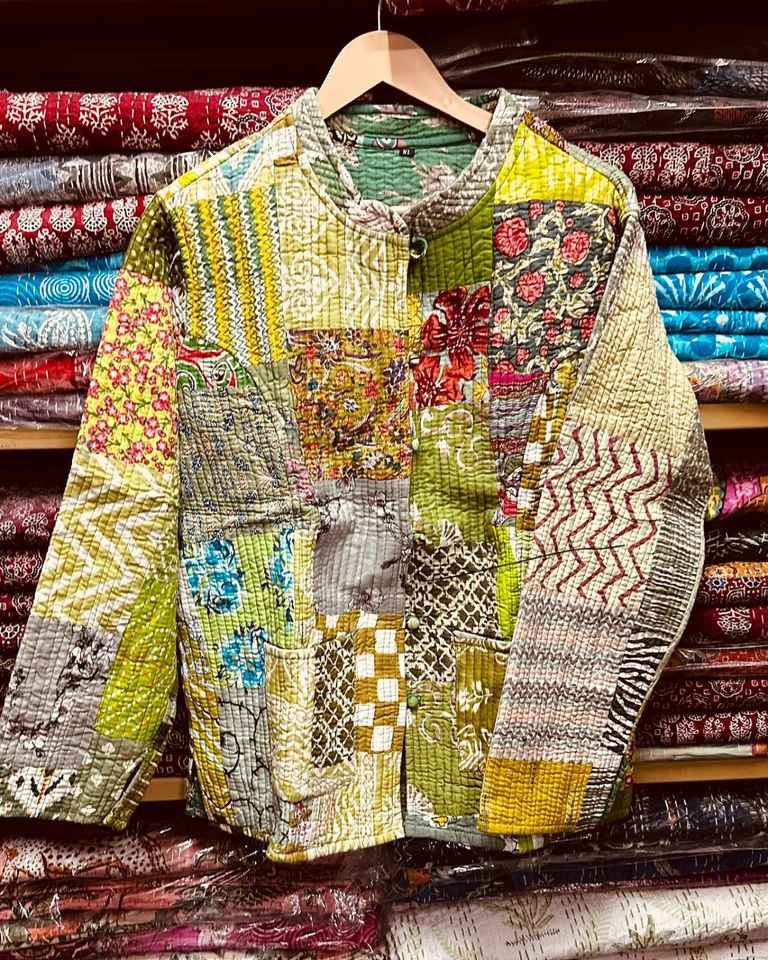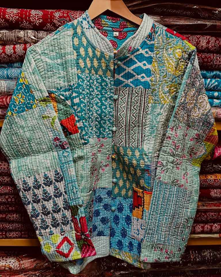 เสื้อแจ็กเก็ตผ้าฝ้ายบุนวมทำด้วยมือมีน้ำหนักเบาแบบอินเดียให้ความอบอุ่นตามฤดูกาลพร้อมเทคนิคการพิมพ์สำหรับทุกฤดูกาล