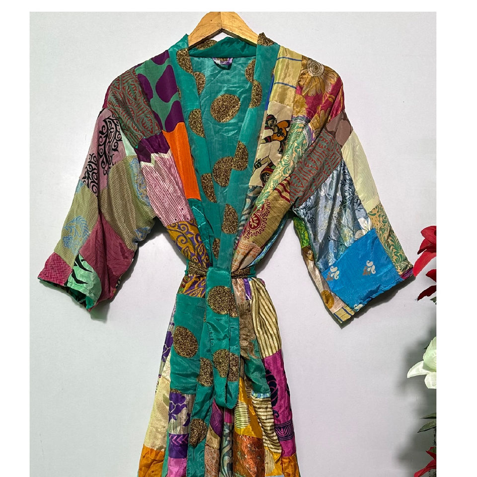 ชุดนอนผ้าไหมยาวงานเย็บปะสไตล์วินเทจของผู้หญิงชุดกิโมโนสำหรับเพื่อนเจ้าสาวทำด้วยมือสไตล์อินเดีย