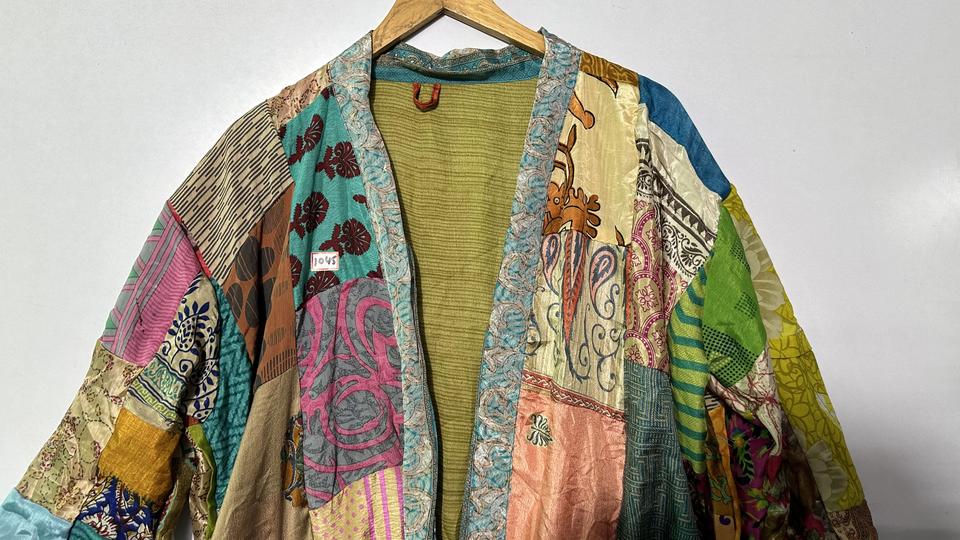 ชื่อผลิตภัณฑ์:กิโมโนผ้าไหมเย็บปะติดปะต่อกันทำด้วยมือ
