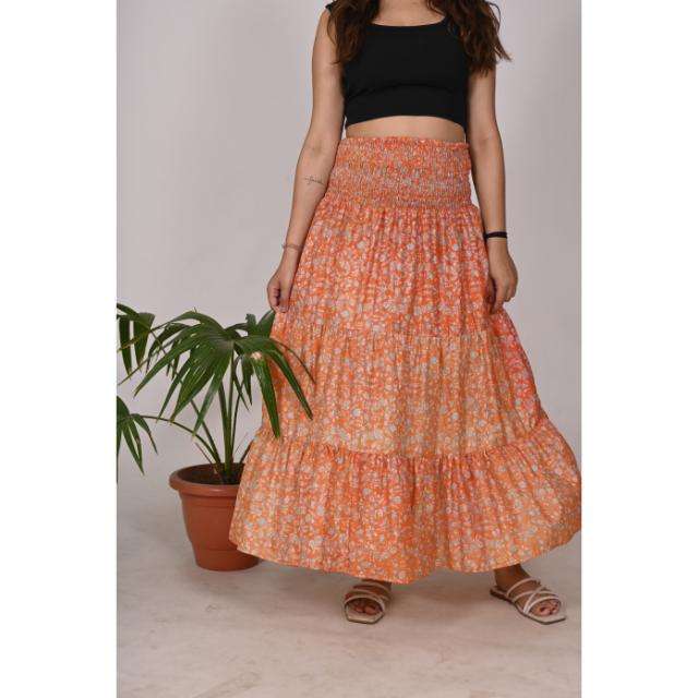 กระโปรงคลุมยาวผ้าไหมแท้ทำด้วยมือสไตล์อินเดียสำหรับผู้หญิงเอวยางยืดชุดฤดูร้อนและชายหาดแบบลำลอง