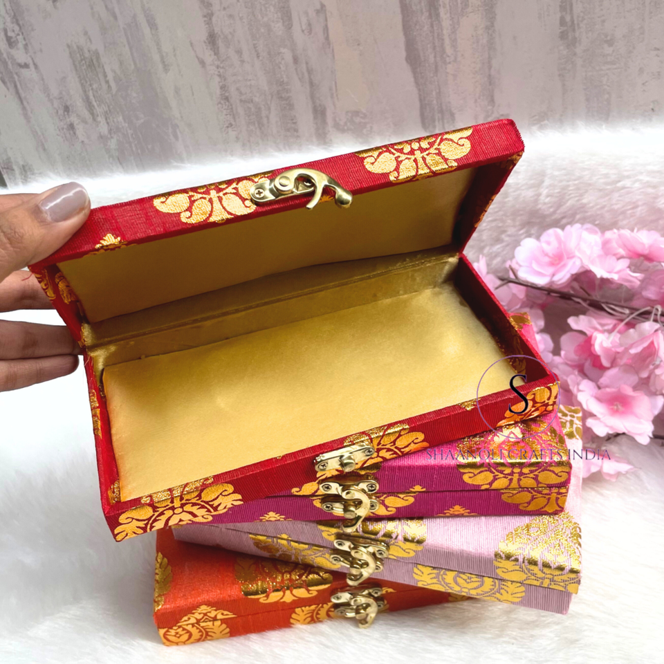 กล่องไม้เอ็มดีเอฟทำด้วยมือของชาวอินเดียกล่องเงินสดที่ปิดด้วยทองเหลืองสีทองสำหรับเป็นของขวัญเครื่องประดับสำหรับงานแต่งงานและงานเลี้ยงฮาลดี