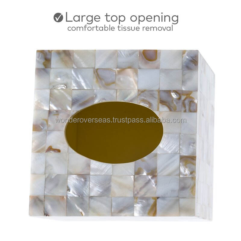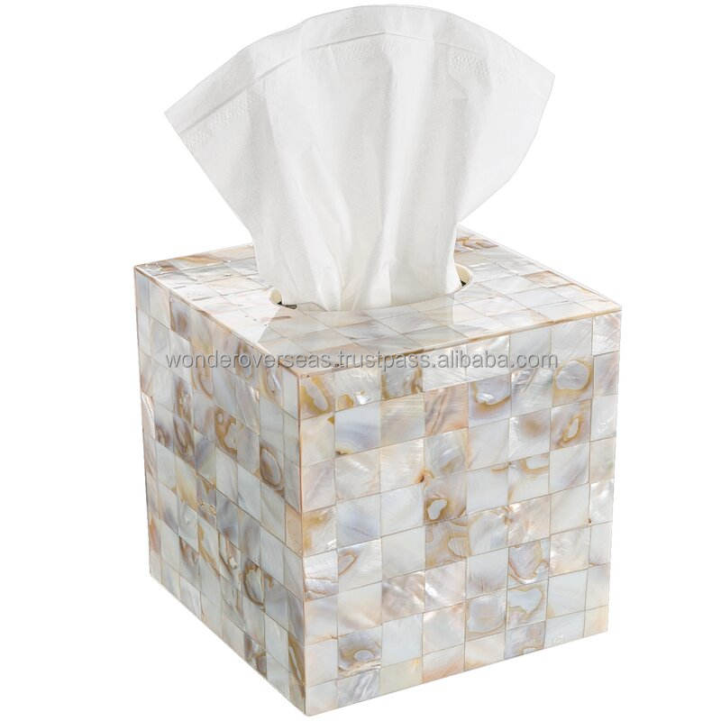 กล่องใส่กระดาษทิชชูทำจากไม้แม่ลูกมุกงานแฮนด์เมดสไตล์อินเดียจากต่างประเทศ