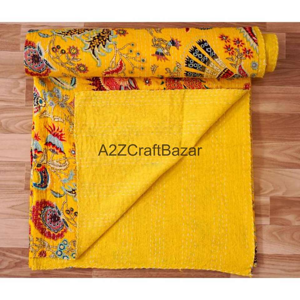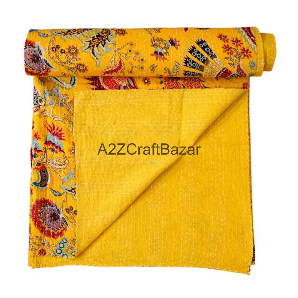 ผ้าห่มคันธาลายดอกไม้หลากสี ทำมือจากอินเดีย ผ้าฝ้ายแท้ 100% สไตล์โบฮีเมียน สำหรับเตียงนอน มีจำหน่ายในราคาขายส่ง