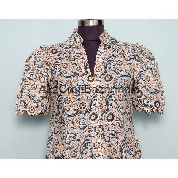 ชุดเดรสคังกูร่าดีไซน์ใหม่ทำมือจากอินเดีย แขนสั้น คอวี ผ้าฝ้าย 100% ลายดอกไม้ ระบายอากาศได้ดี สวมใส่สบายสำหรับฤดูร้อน