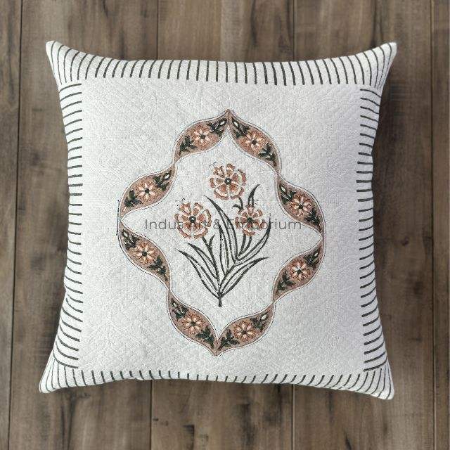 ปลอกหมอนอิงบนโซฟาผ้าคอตตอนพิมพ์ลายดอกไม้สีแดงแฮนด์เมดดีไซน์ใหม่อินเดีย