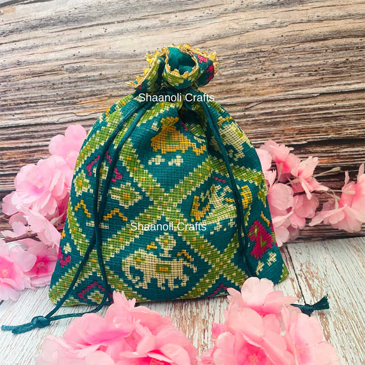 กระเป๋าปอทลีพิมพ์ลายปาโตลาทำมือจากอินเดียสำหรับผู้หญิง ของชำร่วยงานแต่งงาน ของขวัญตอบแทน งานปักลายแบบดั้งเดิม ความจุขนาดใหญ่ ใช้สำหรับการซื้อของ