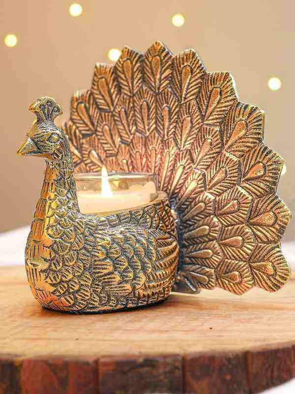 ที่ใส่เทียนรูปนกยูงแฮนด์เมดอินเดียที่วางเทียนตกแต่งบ้านที่ดีที่สุดที่วางเทียนนกยูงชุบทอง