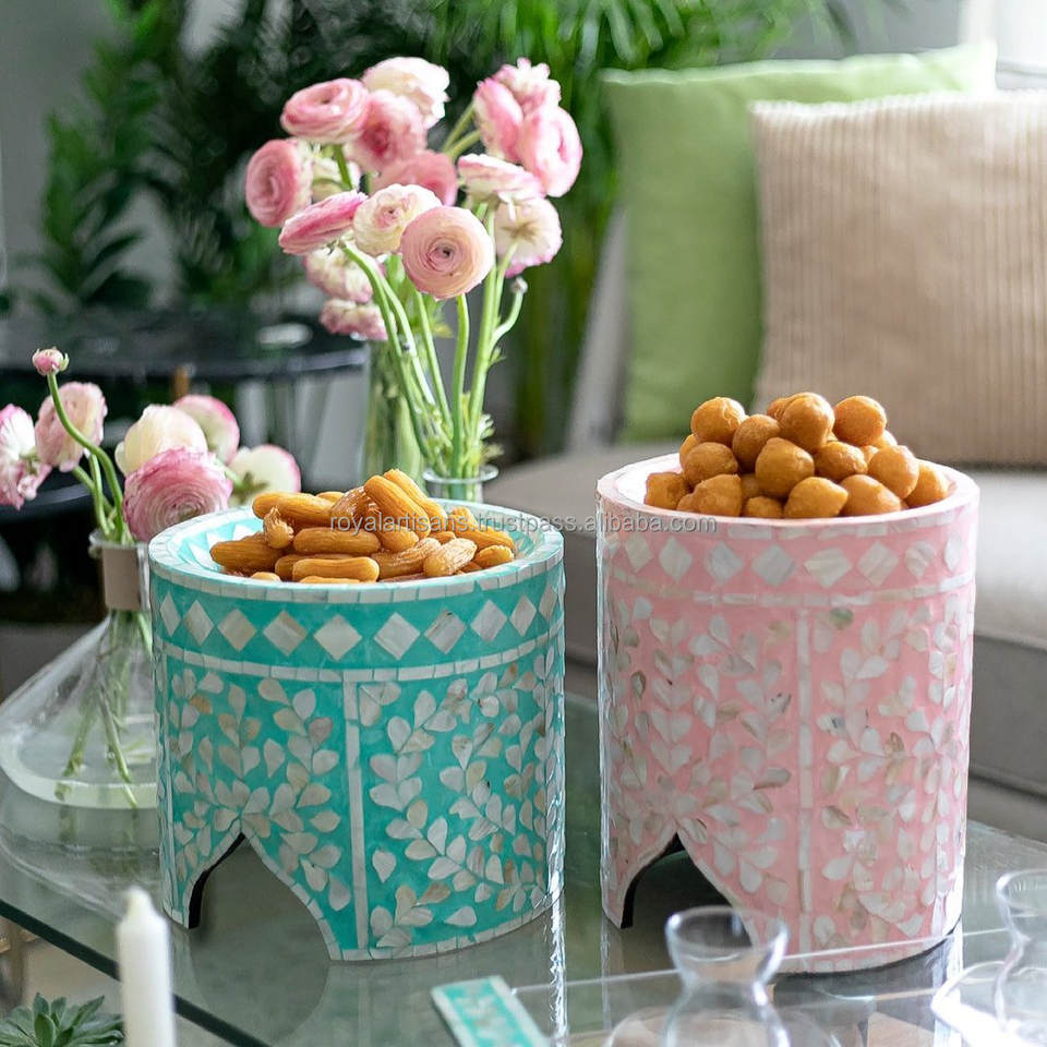 Indian Handmade Polished Mother Pearl Inlay Cake Stand Customized Colors Eco-Friendly Royal Artisans Perfect Giveaways