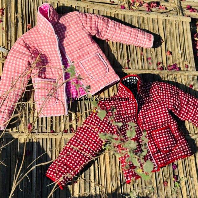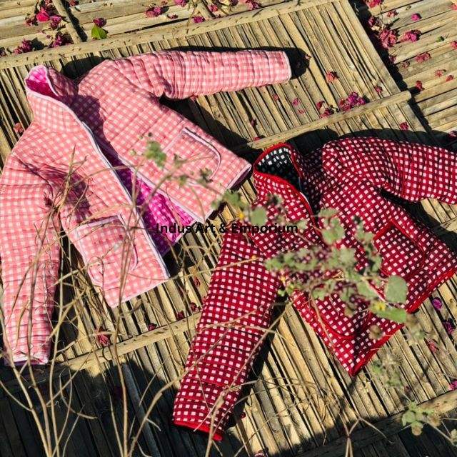 เสื้อแจ็คเก็ตผ้าฝ้ายลายตารางเย็บมือแบบอินเดีย แจ็คเก็ตสั้นปักมือ เสื้อโค้ทแบบยูนิเซ็กซ์ แจ็คเก็ตทำมือ
