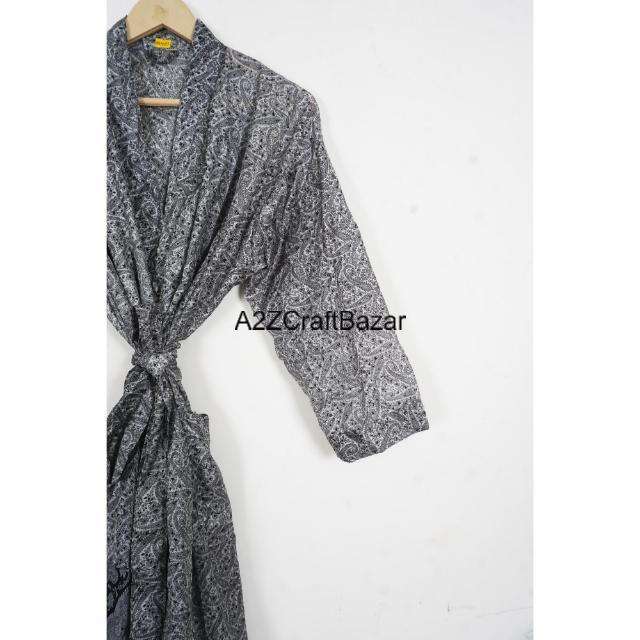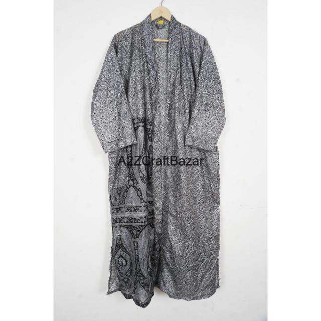 ชุดกิโมโนผ้าไหมทำมือจากอินเดีย คอวี ผูกเชือก แขนสามส่วน ดีไซน์ลายปะติด สำหรับสุภาพสตรี สวมใส่ได้ทุกฤดู สวยสง่า