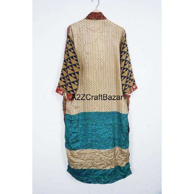 ชุดกิโมโนผ้าไหมทำมือจากอินเดีย คอวี ผูกเชือก ดีไซน์แบบปะติด แขนยาว ระบายอากาศได้ดี ใส่ได้ทุกฤดู สำหรับผู้หญิง