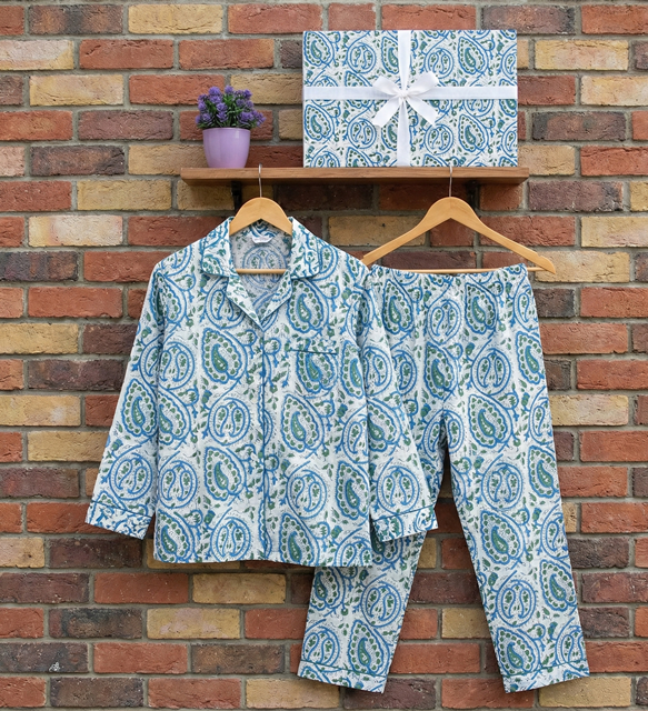 ชุดนอนผ้าฝ้ายทอมือลายทางสำหรับผู้หญิง งานปักมือและจักร แบบสองด้าน สำหรับฤดูร้อน ผลิตในอินเดีย 100% ผ้าฝ้าย