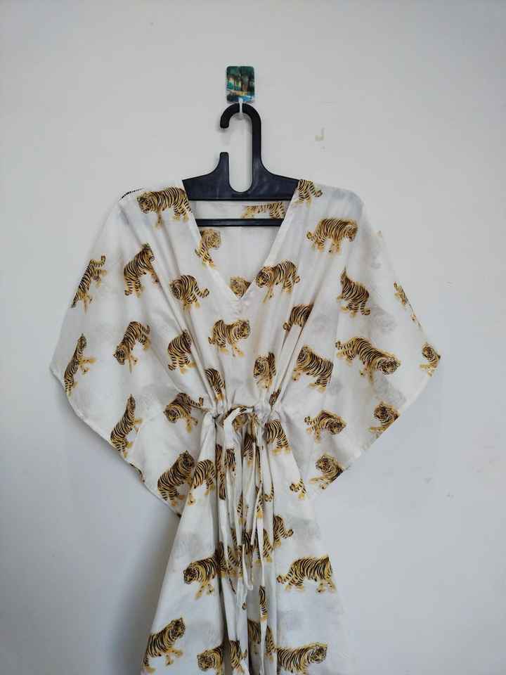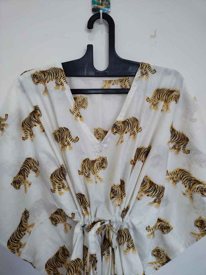 ชุดคลุมชายหาดผ้าฝ้ายพิมพ์ลายเสือทำมือจากอินเดีย น้ำหนักเบา เหมาะสำหรับฤดูร้อน
