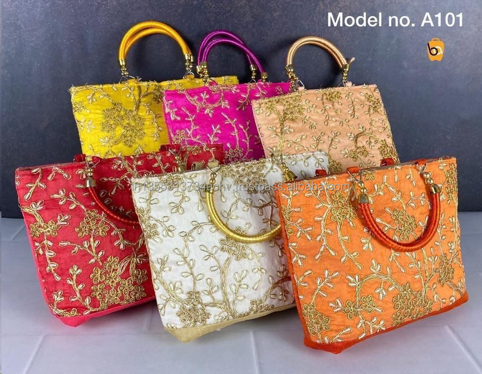 กระเป๋าคลัทช์ปักลายวินเทจทำมืออินเดียพร้อมลูกปัดมุกสองมือจับกระเป๋าถืองานแต่งและปาร์ตี้ตอนเย็น