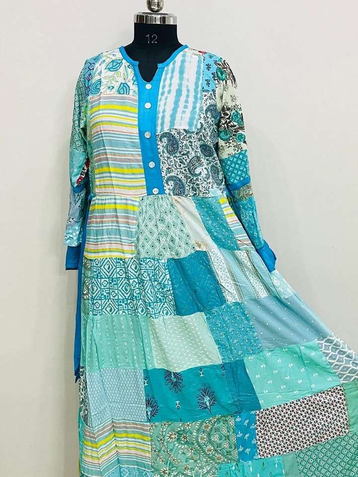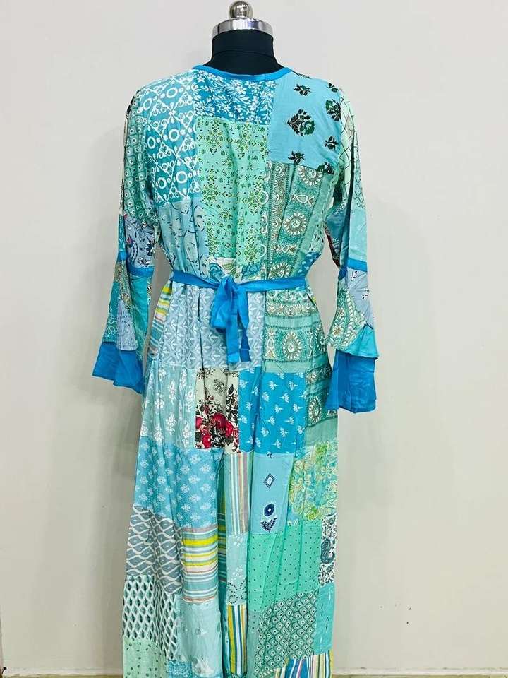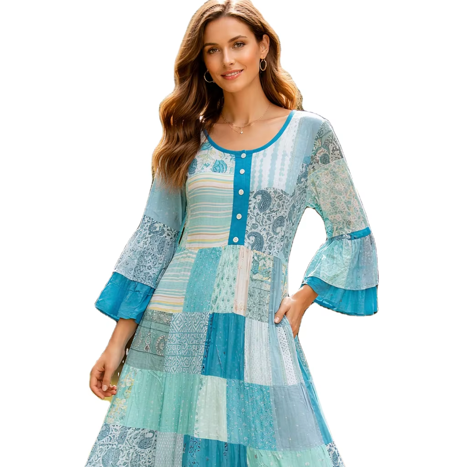 เดรสยาวผ้าฝ้ายทำมือสไตล์วินเทจจากอินเดีย ตกแต่งด้วยผ้าปะติดปะต่อ 100% แขนทรงร่ม สไตล์โบฮีเมียน สำหรับผู้หญิง ใส่สบายๆ ในฤดูใบไม้ร่วงและฤดูร้อน