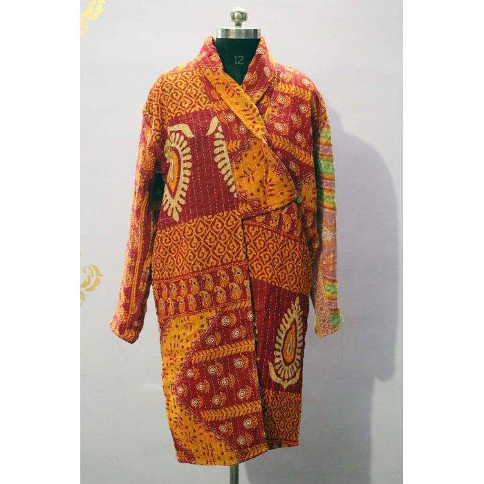 เสื้อแจ็คเก็ตผ้าควิลท์แบบกลับด้านได้ ทำมือสไตล์อินเดีย วินเทจ ผ้าฝ้าย 100% แฟชั่นโบฮีเมียน เสื้อโค้ทยาวสำหรับผู้หญิงและผู้ชาย ใส่ได้ทั้งฤดูหนาว