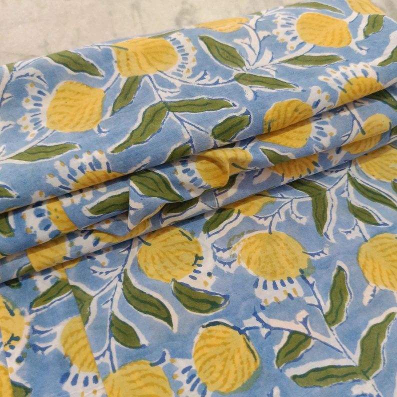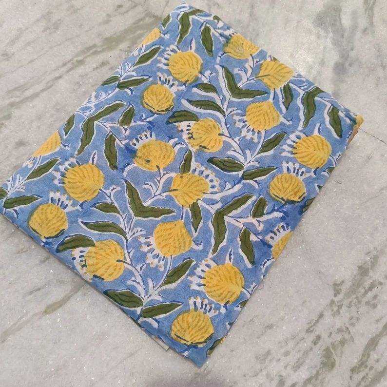 Indian Handmade Women's Apparel Light Weight Yellow Floral Hand Block Print Cotton Fabric Knitted Nomex Dressmaking Handmade