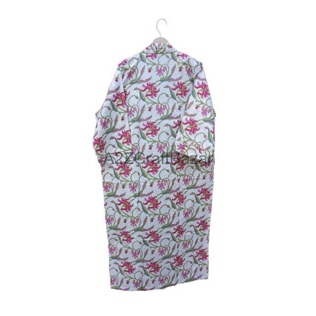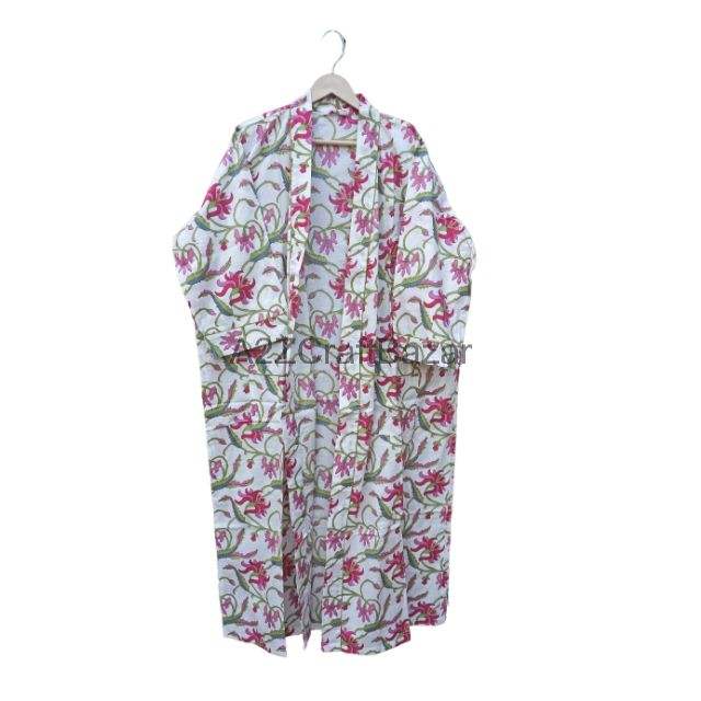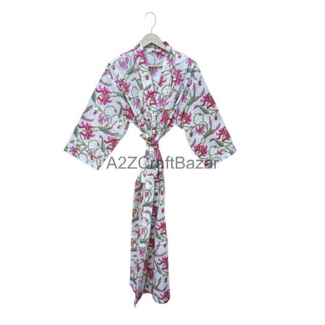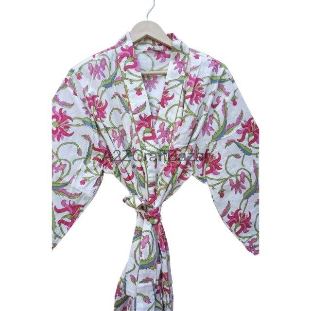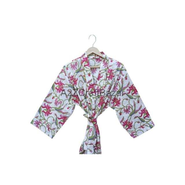 ชุดว่ายน้ำผ้าฝ้ายแบบทำมือของผู้หญิงชุดนอนชุดคลุมยาวสำหรับอาบน้ำชุดกิโมโนระบายอากาศได้ดีมีทุกฤดูพร้อมของขวัญที่สมบูรณ์แบบลายดอกไม้