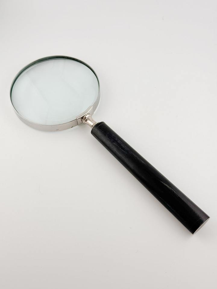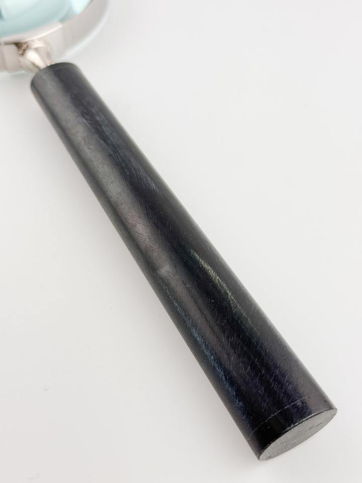 แว่นขยายแบบมือถือทำจากไม้ทำด้วยมือของชาวอินเดียพร้อมสลักกระดูกโลหะและแตรประเภทแว่นขยาย