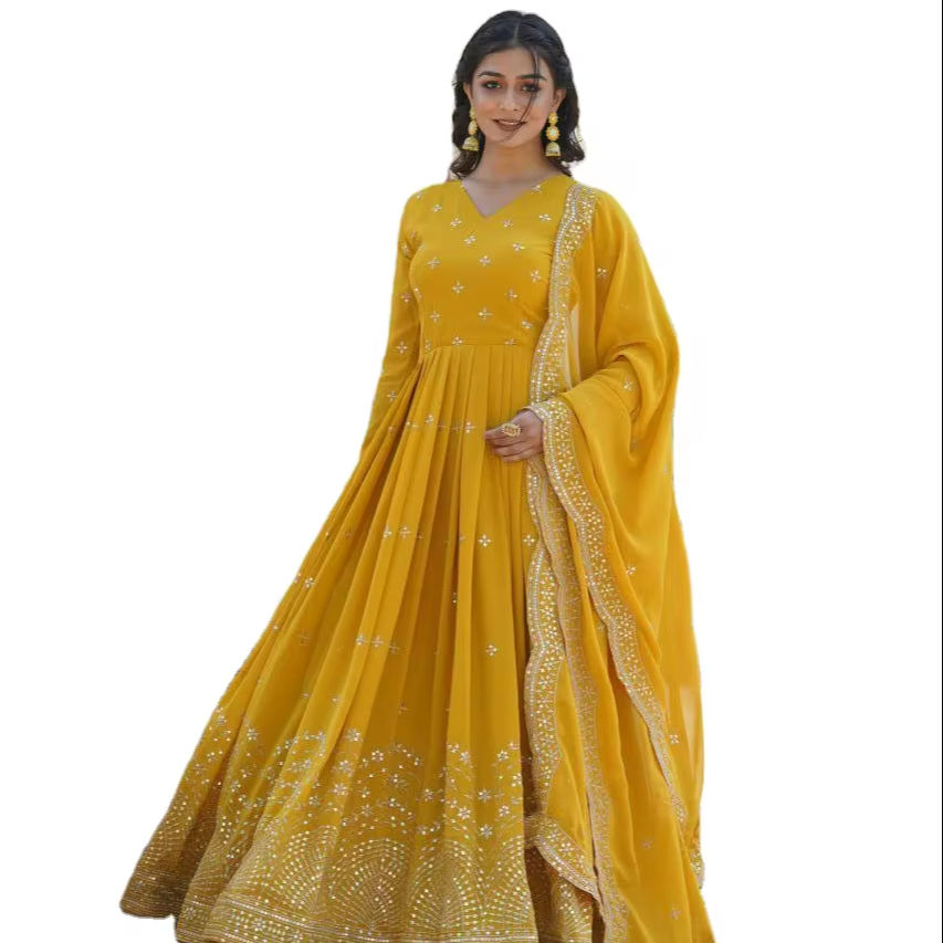 ชุดผ้าไหมลินินอินเดีย + เสื้อคลุม พร้อมงานปัก หลากสี ชุดลำลอง ขายส่งจากอินเดีย