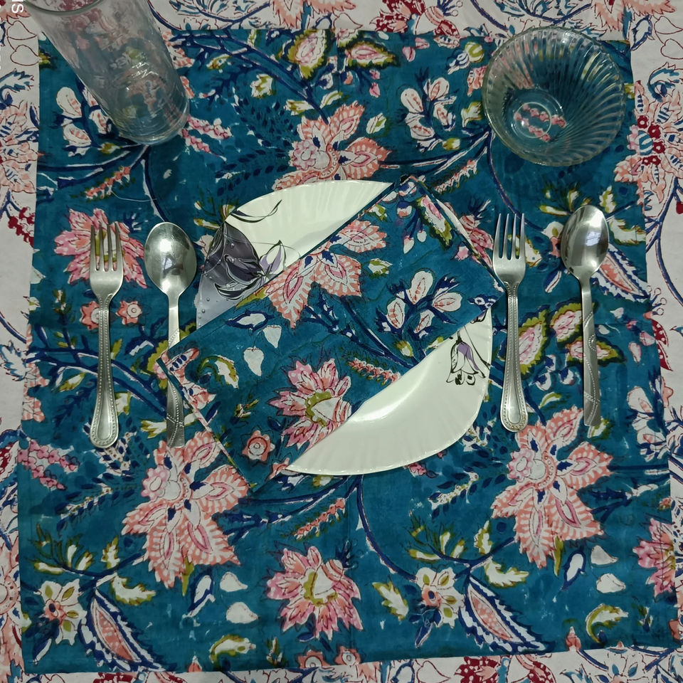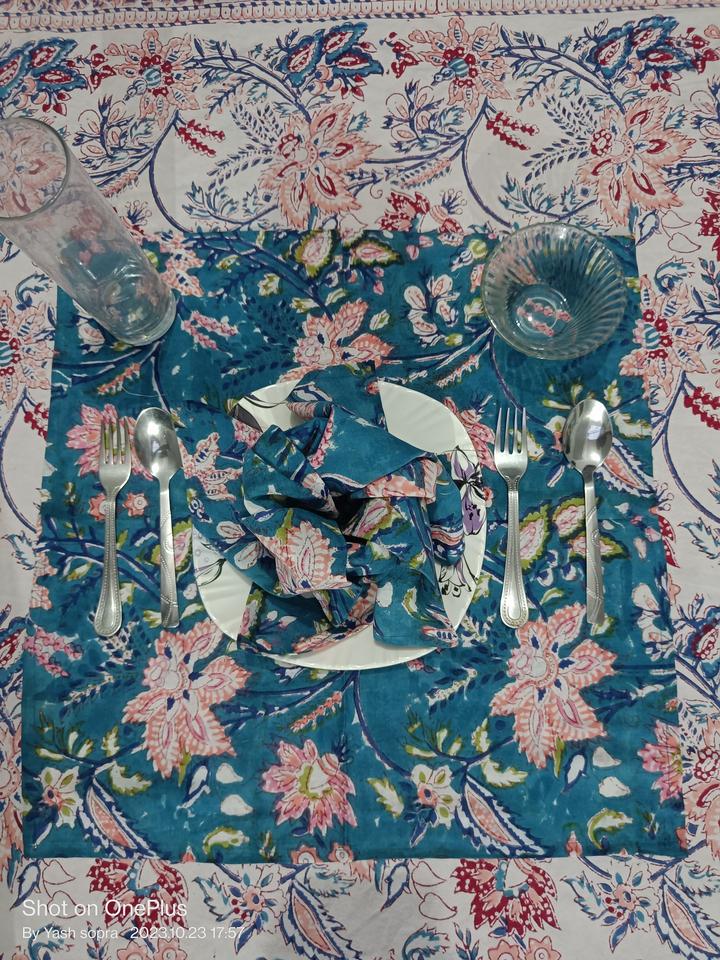 Indian Holiday Bandana Handkerchief Indian Cotton Women's Printed Fabric Dining Table Mat and Napkins Set Pieces Ethnic