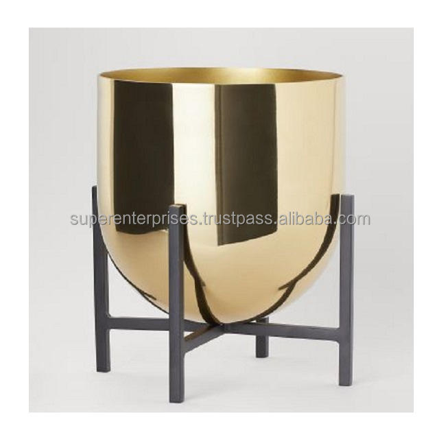 กระถางต้นไม้ทองเหลืองอินเดียสำหรับตกแต่งสวนใช้ได้หลากหลายสำหรับบ้านและงานแต่งงานที่ปลูกต้นไม้โลหะสีเขียว