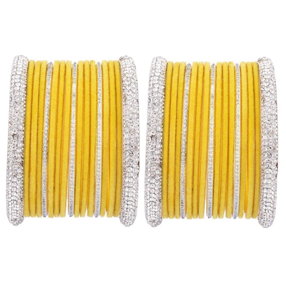Embellished with crystals, cz, smooth velvet coat on bangles,