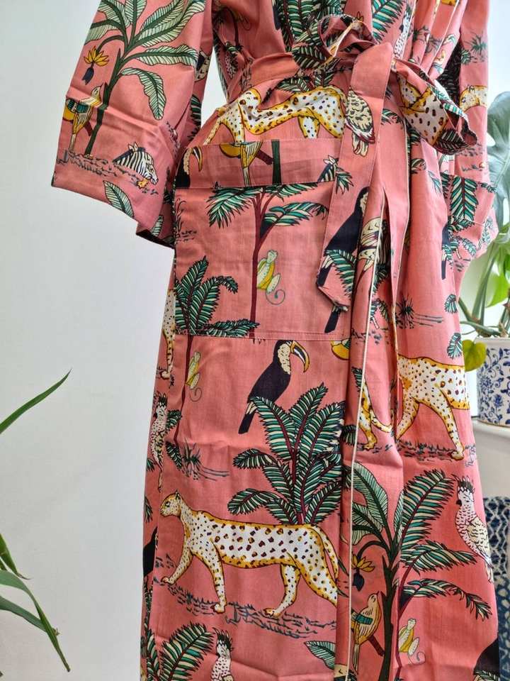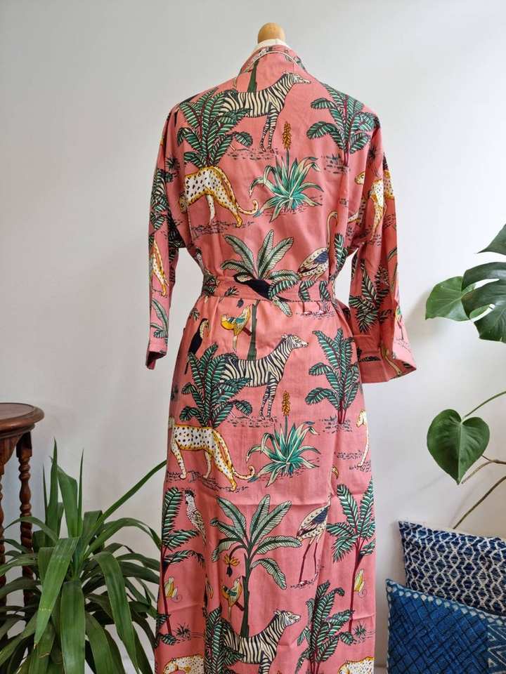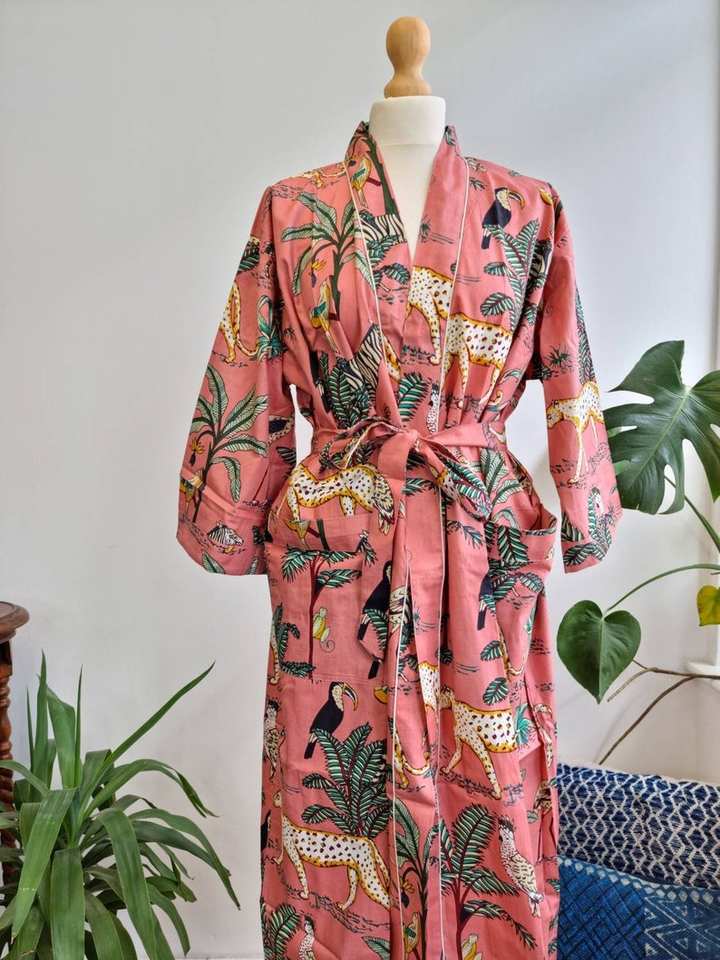 เสื้อคลุมกิโมโนผ้าฝ้ายพิมพ์ลายป่า, เสื้อคลุมอาบน้ำโบโฮสำหรับผู้หญิงนุ่มและน้ำหนักเบาผ้าฝ้ายร้อยละ100เหมาะสำหรับสวมใส่ตามฤดูกาล