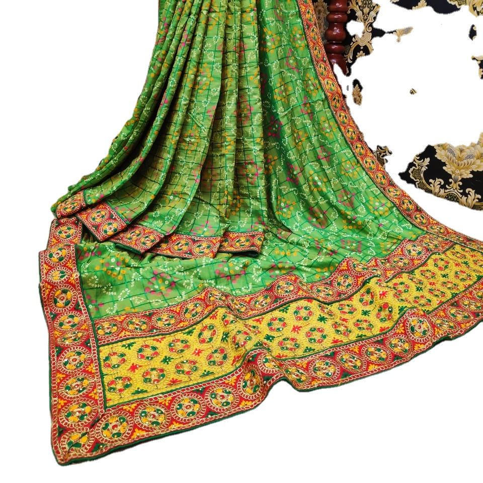 Indian Katan Saree Latest Designer Party Wear Wedding Ladies Women Wear Georgette Silk Embroidery Work Sari With Blouse Ethnic