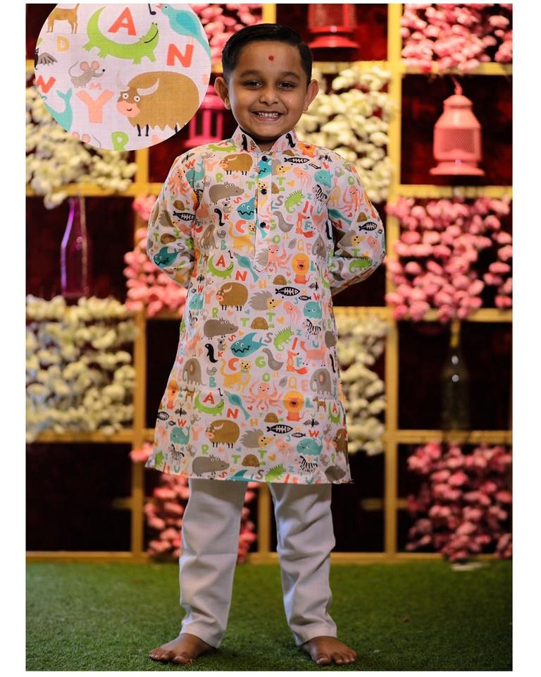 Indian Kids Wear Cotton Kurta Pyjama Set for Diwali Holi Navtarri Eid Rakhi
