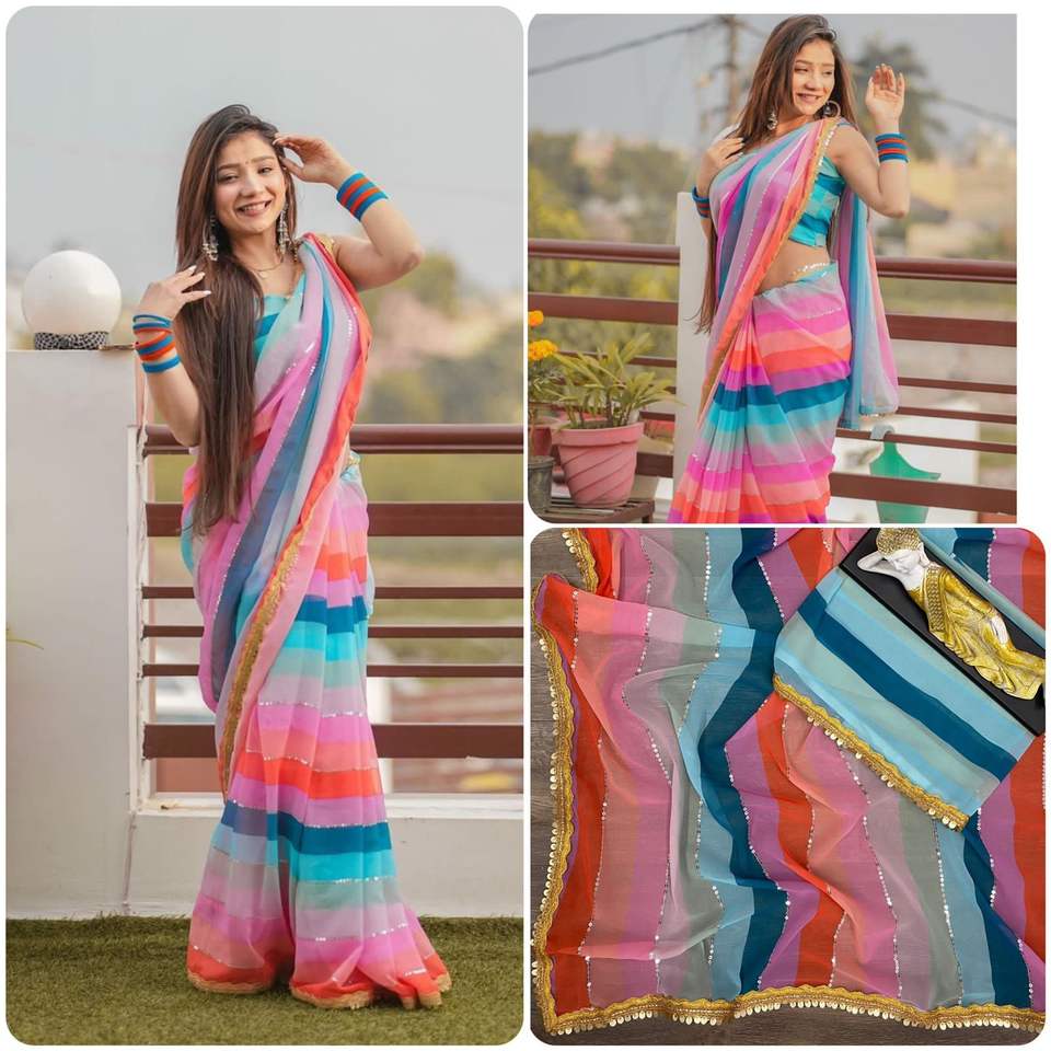 เสื้อสตรีพิมพ์ลาย Georgette ล่าสุดของอินเดียเสื้อทำงานชุดแฟนซีของผู้หญิงชุดปาร์ตี้งานแต่งงานแฟชั่นสตรีส่าหรี