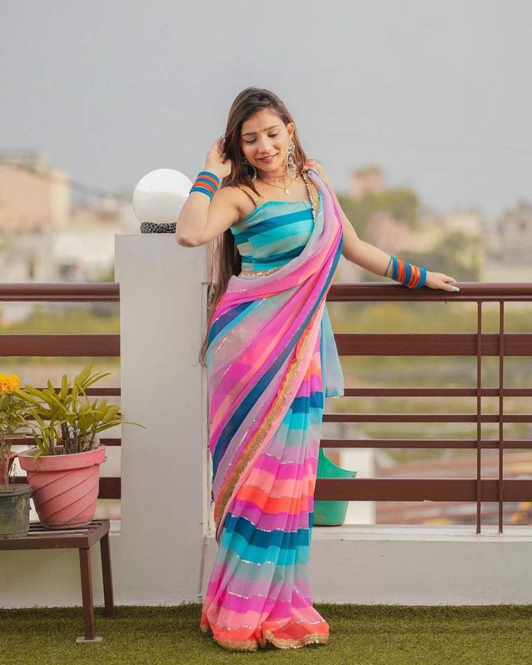 ส่าหรีออกแบบลายทางที่ไม่ซ้ำใคร