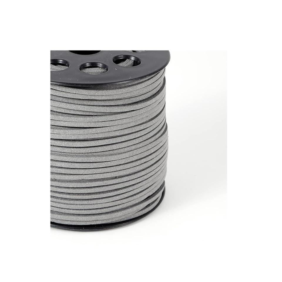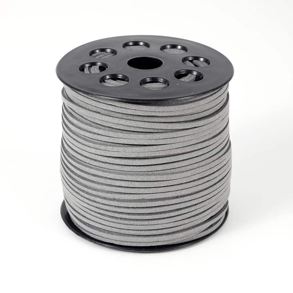 สายหนังอินเดีย2.6มม. สายหนังนิ่มลูกไม้หนังเทียมสำหรับทำเครื่องประดับสายหนังสีเทาม้วนขนาด50หลาขายดี