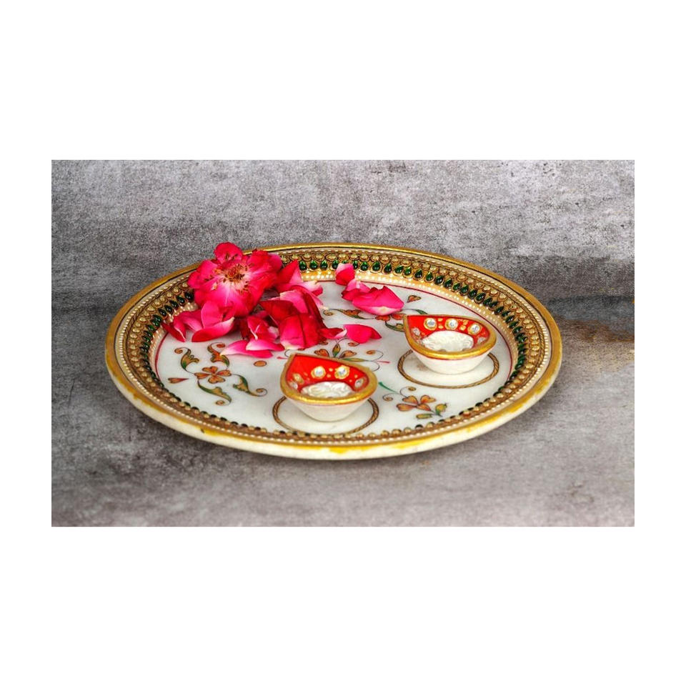 ชื่อผลิตภัณฑ์:จานปูจานหินอ่อนทาสีทองแบบอินเดีย