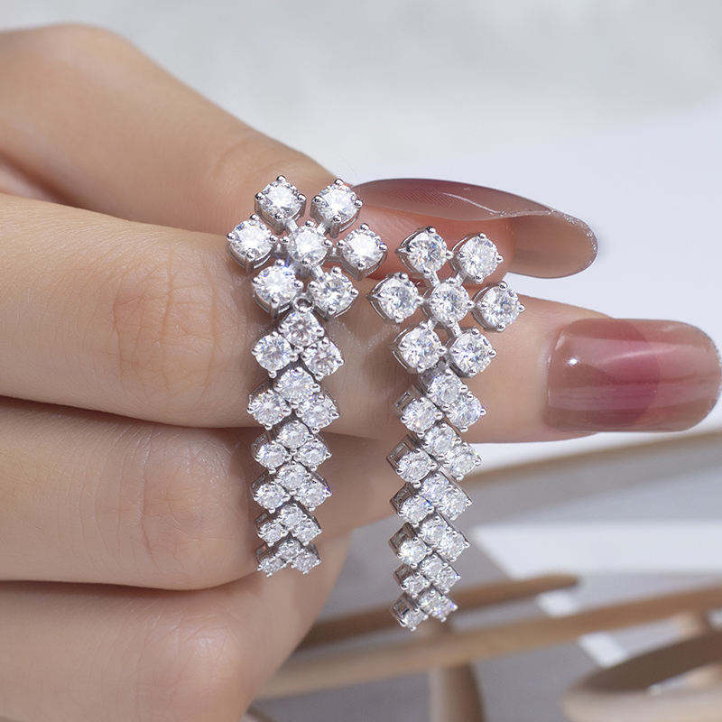 ต่างหูเพชรแท้ชุบเงินอินเดียหรูหรา รับรองโดย IGI เพชรขาวบริลเลียนต์คัท ความบริสุทธิ์สูง สี E สำหรับผู้หญิง