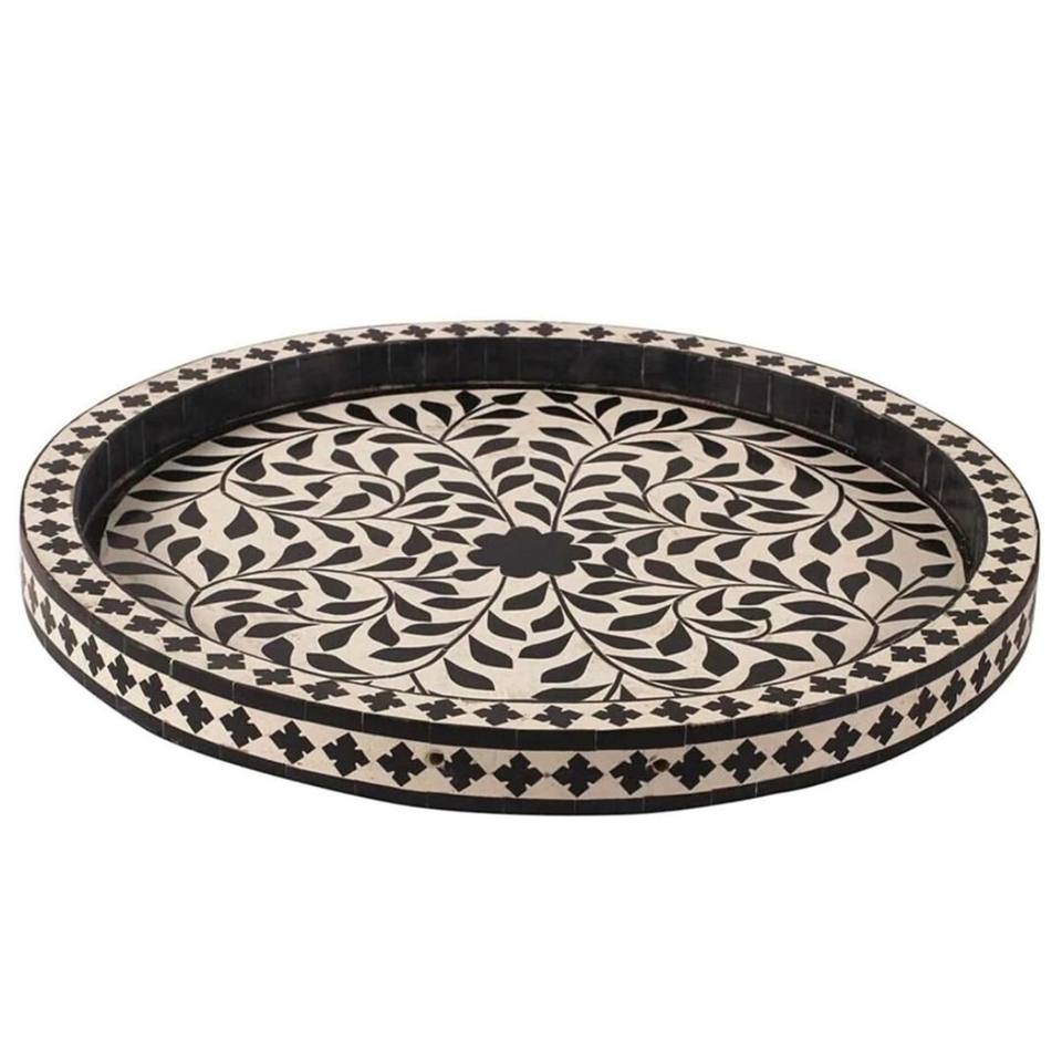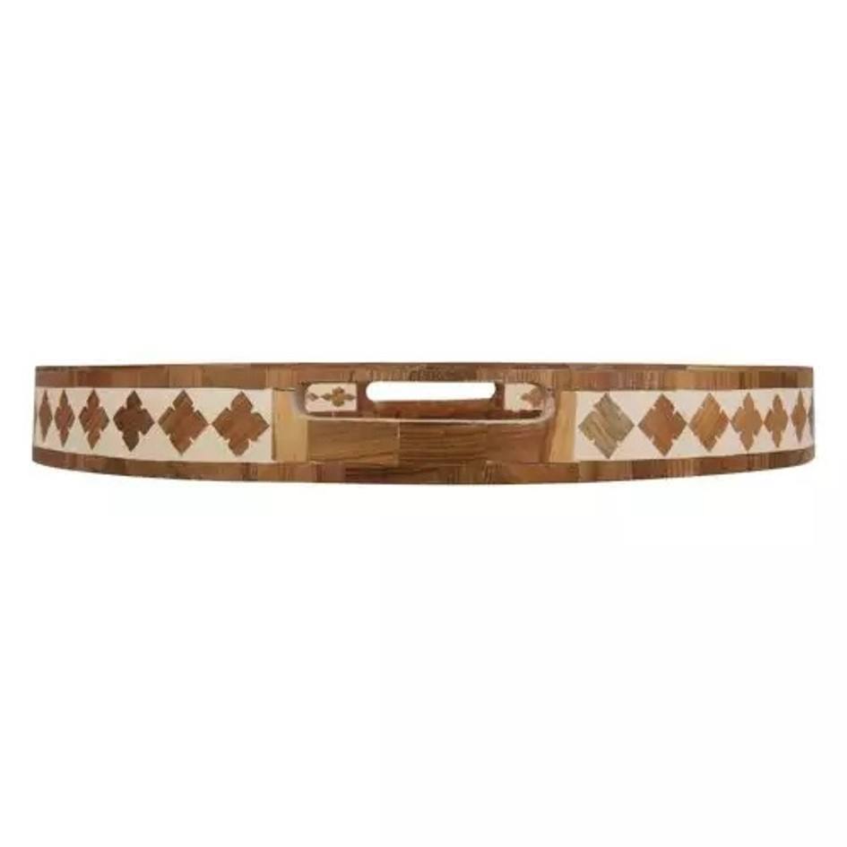 ถาดไม้ MDF อินเดียและงานฝีมือฝังลายไม้คุณภาพสูง ถาดเสิร์ฟทรงกลมทำมือ ของใช้ในบ้าน ร้านค้าในดูไบและซาอุดีอาระเบีย