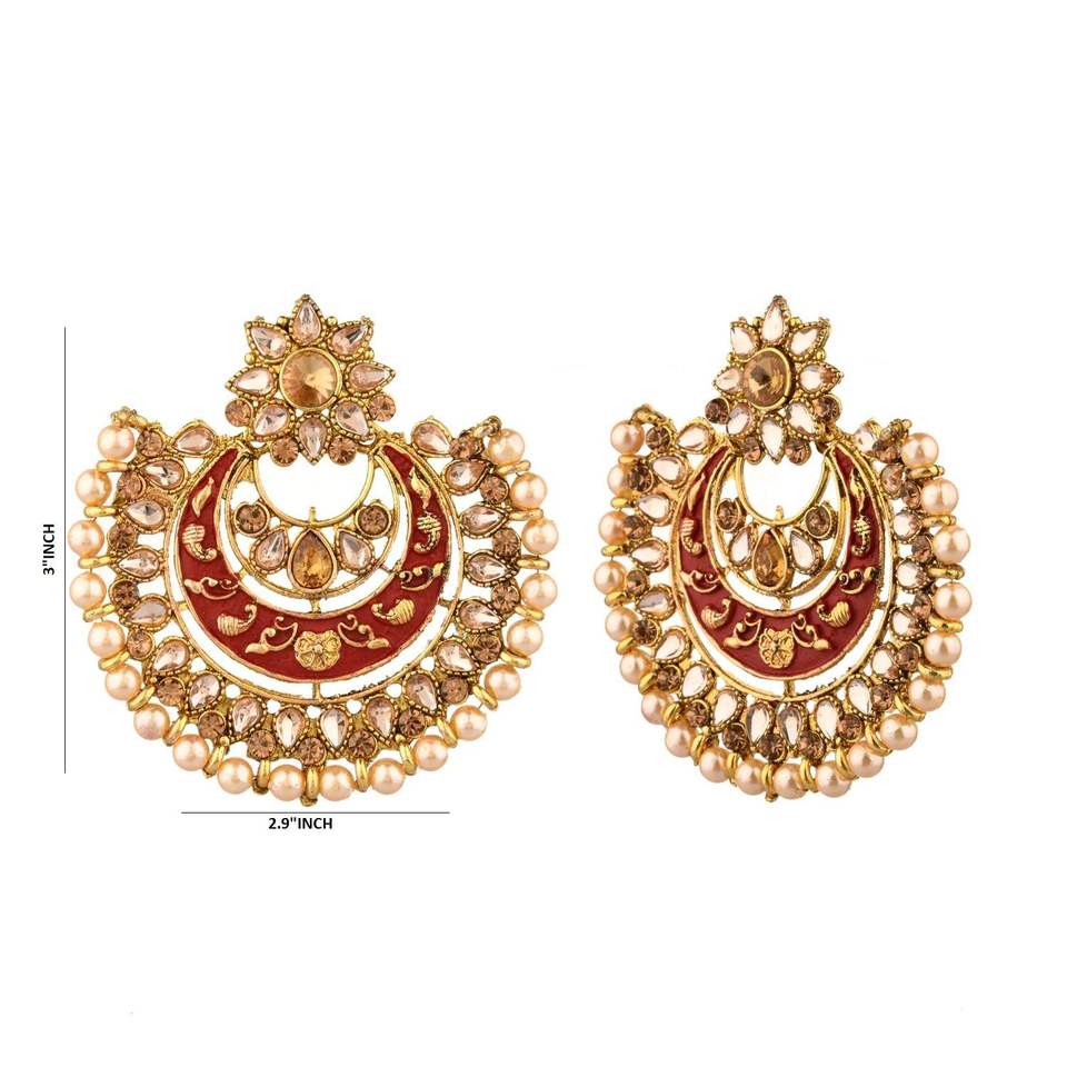 Maang Tikka: L X W: 6.9" x 2.9", Earrings: L x W: 3" x 2.9"