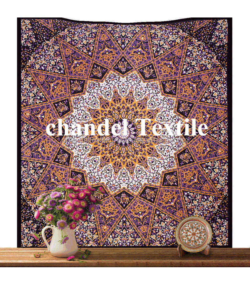 พรมแขวนผนังสไตล์อินเดียแมนดาลา,ผ้าปูแนวฮิปปี้สเปรดดิโอสำหรับตกแต่งบ้าน