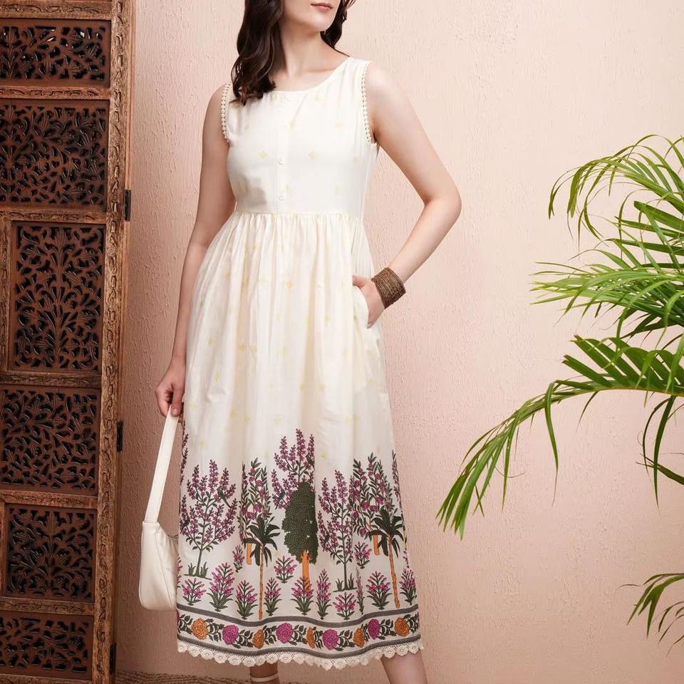 เดรสมิดิทรงพอดีและบานพิมพ์ลายดอกไม้สวยงามผลิตจากอินเดียสำหรับงานปาร์ตี้ในสวนและงานฤดูร้อนเพื่อการจัดหาทั่วโลก