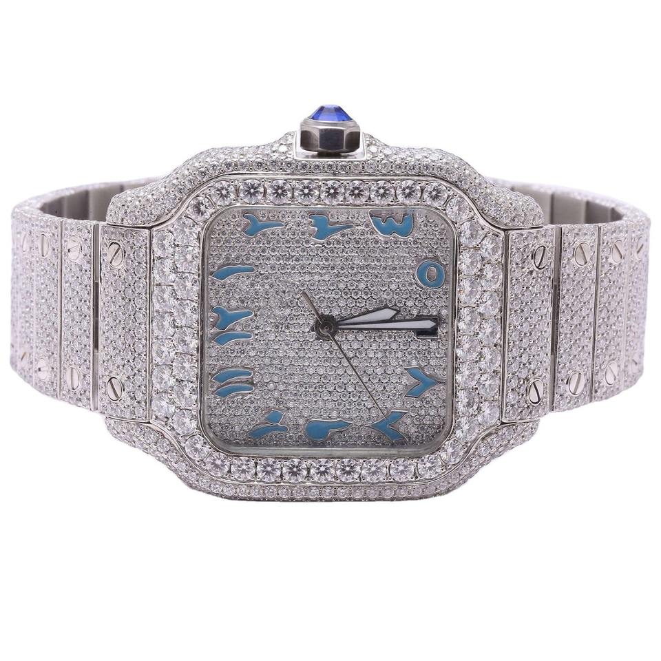 นาฬิกาเพชรสำหรับปลูกในห้องปฏิบัติการทำจากสแตนเลสผลิตจากอินเดียพร้อมเคสสี่เหลี่ยม VVS