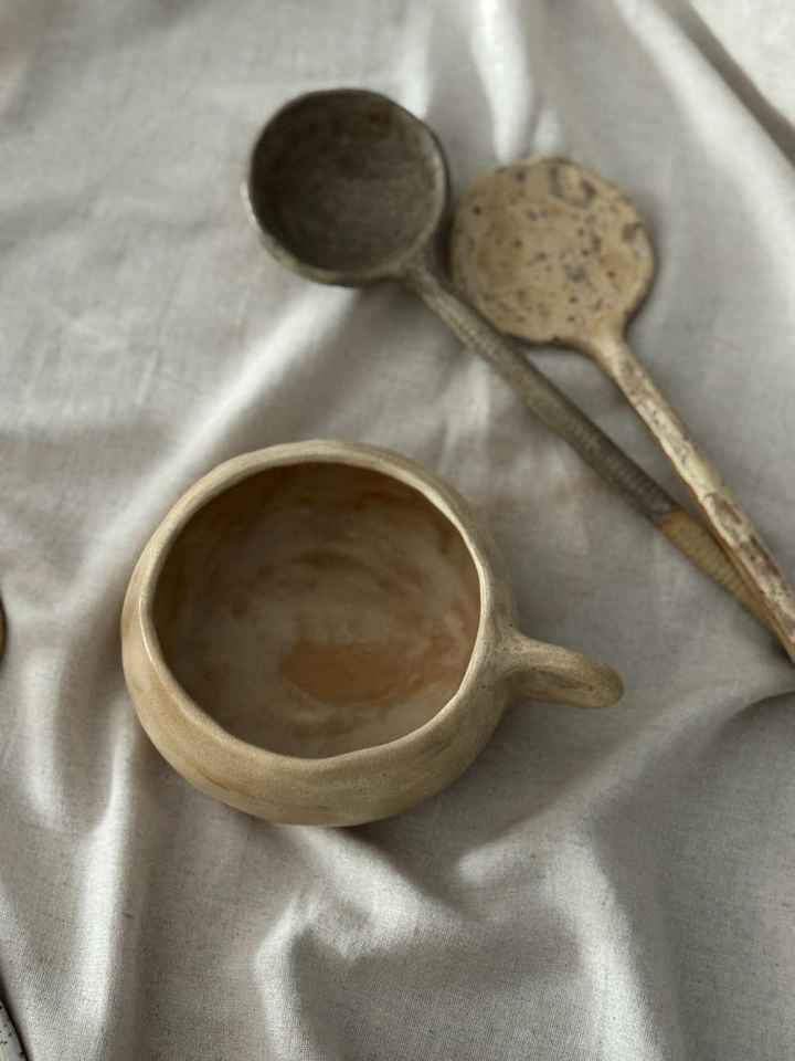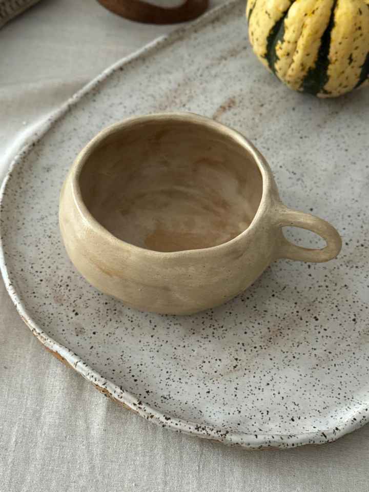 แก้วกาแฟเซรามิกปากกว้าง ทาสีมือธรรมชาติ