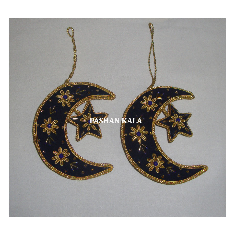 เครื่องประดับแขวนต้นคริสต์มาสทำจากวัสดุผ้าปักซาริของอินเดียสีดำใช้เป็นของขวัญสำหรับธุรกิจ