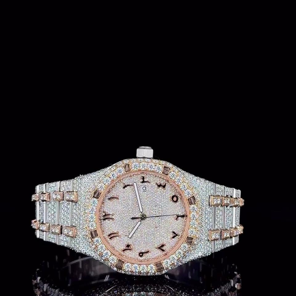 นาฬิกาข้อมือหรูหราสองสี ผลิตในอินเดีย สายทนทานสีโรสโกลด์ พร้อมเคลือบสีโรสโกลด์ พร้อมจำหน่ายในราคาส่งออก