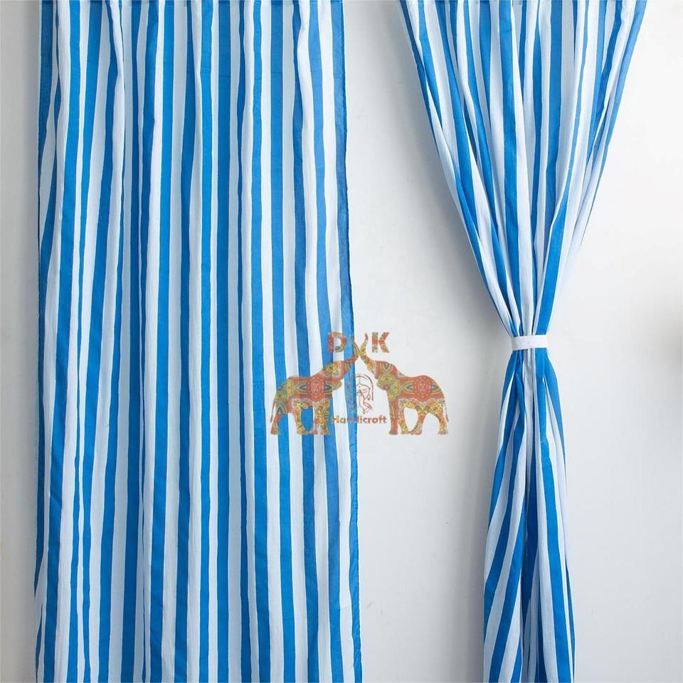 ผ้าม่านพิมพ์ลายทางทำมือจากผ้าฝ้ายแท้ 100% ผลิตในอินเดีย สำหรับตกแต่งหน้าต่างห้องนั่งเล่น