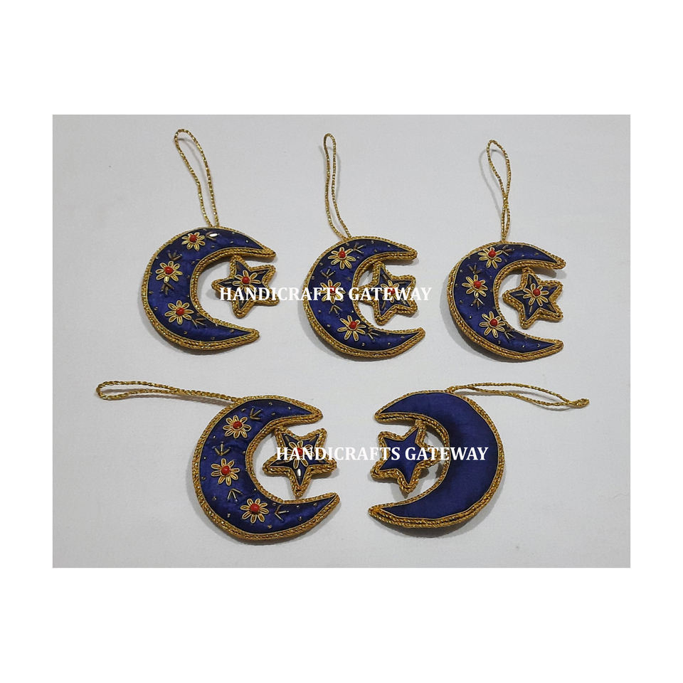 ผู้ผลิตและผู้ค้าส่งจากอินเดีย ของตกแต่งแขวนรูปพระจันทร์และดวงดาว ปักด้วยด้ายซารี สัญลักษณ์อิสลาม สำหรับเป็นของขวัญในเทศกาลอีด