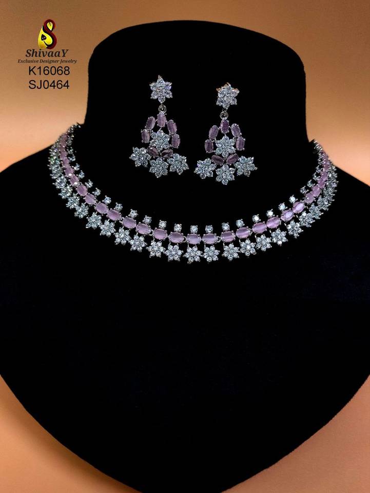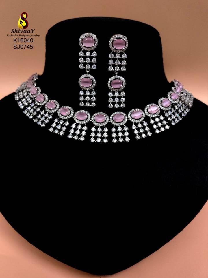 ชุดสร้อยคอและต่างหูทองคำขาวประดับเพชรซิคอนสไตล์บอลลีวูดสุดหรูจากผู้ผลิตอินเดีย เหมาะสำหรับงานแต่งงาน ผู้หญิง สาวๆ และงานปาร์ตี้