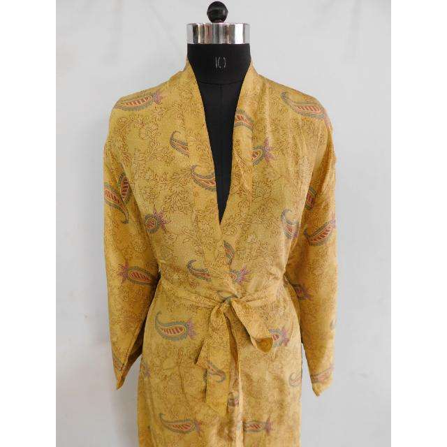 ชุดคลุมกิโมโนผ้าไหมเครปทำมือสำหรับผู้หญิงเสื้อคลุมอาบน้ำส่งออกในฤดูร้อน